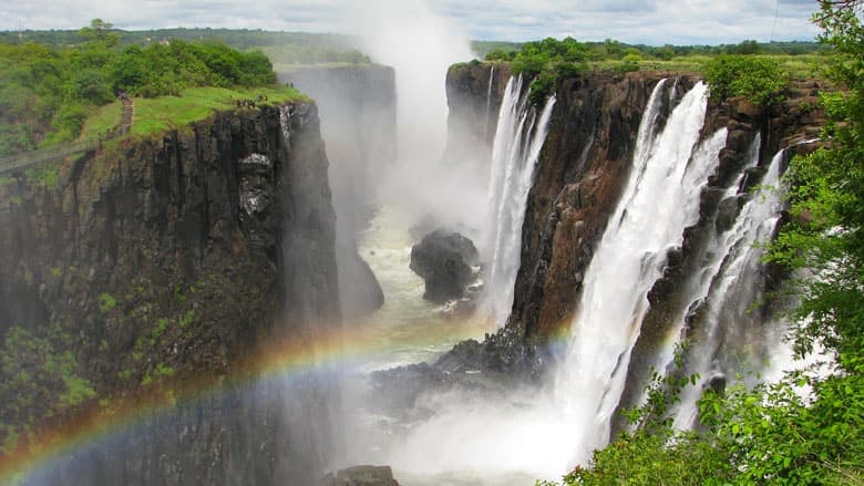 Situé sur le fleuve Zambèze, entre la Zambie et le Zimbabwe, ce tumulte atteint une hauteur maximale de 108 mètres et offre un spectacle des plus impressionnants.