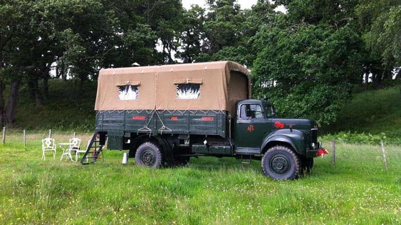 Envie de dormir à la belle étoile en Écosse? Situé dans le Parc National des Cairgnorms, cet hébergement est un vieux camion Commer Q4 de 1956. On y retrouve une cuisinière, un fauteuil, un lit victorien et une échelle utilisée comme escalier. Quoi demander de plus?