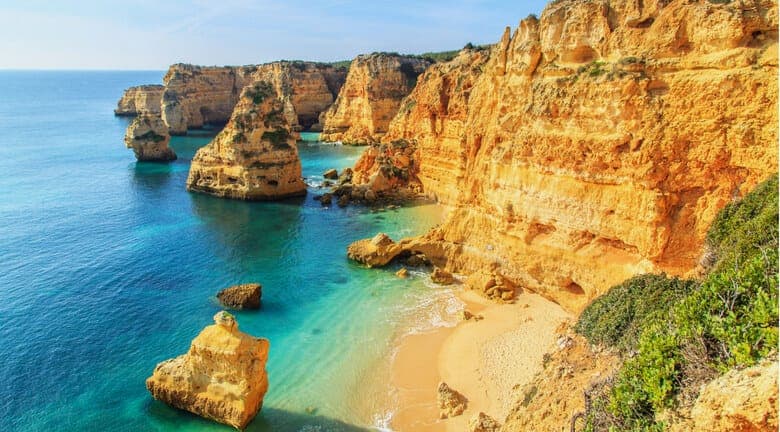 Difficile de ne pas reconnaître la Praia da Marinha, cette plage emblématique du Portugal. Ses grandioses falaises, son sable d’un doré flamboyant et sa mer bleue quasi transparente ont fait de cette plage l’une des plus belles au monde!