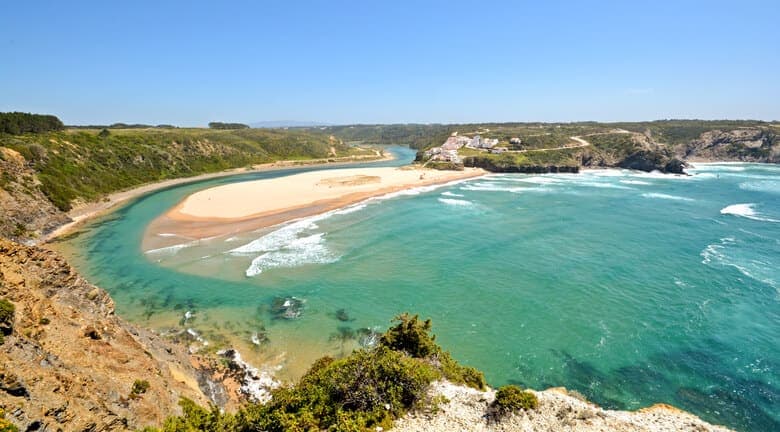 La Praia de Odeceixe, c’est la vraie vie à la mer! La beauté de cette plage, située à l’embouchure de la rivière de Seixe, dans le parc naturel du Sud-Ouest Alentejano et Costa Vicentina, réside dans le fait qu’il est possible non seulement de profiter d’une baignade en mer, mais aussi en rivière. Les enfants apprécient particulièrement les petites lagunes qui se forment sur la grève lors de la marée basse.