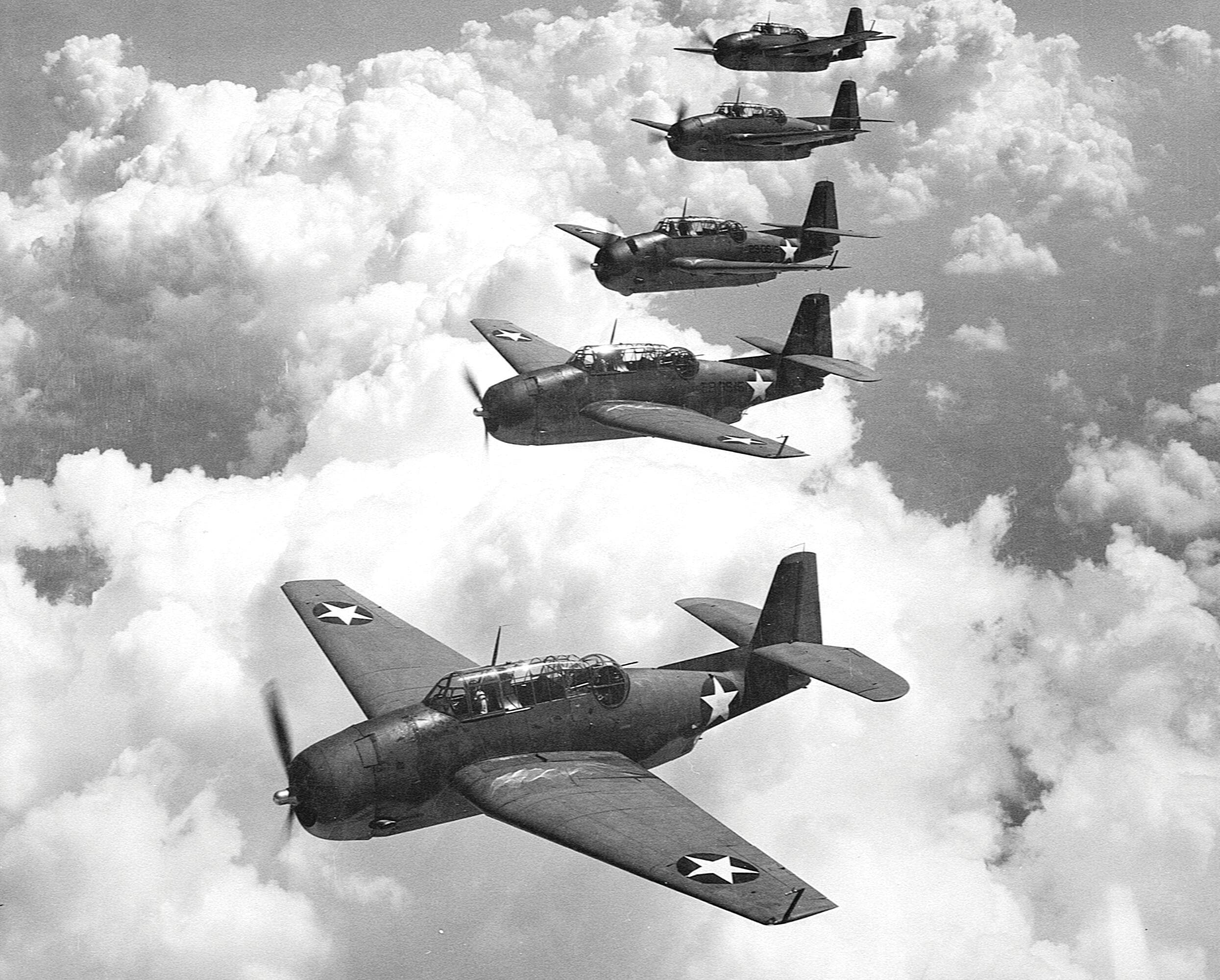 TYPE: Cinq bombardiers torpilleurs Grumman TBF Avenger (escadrille de la marine américaine)