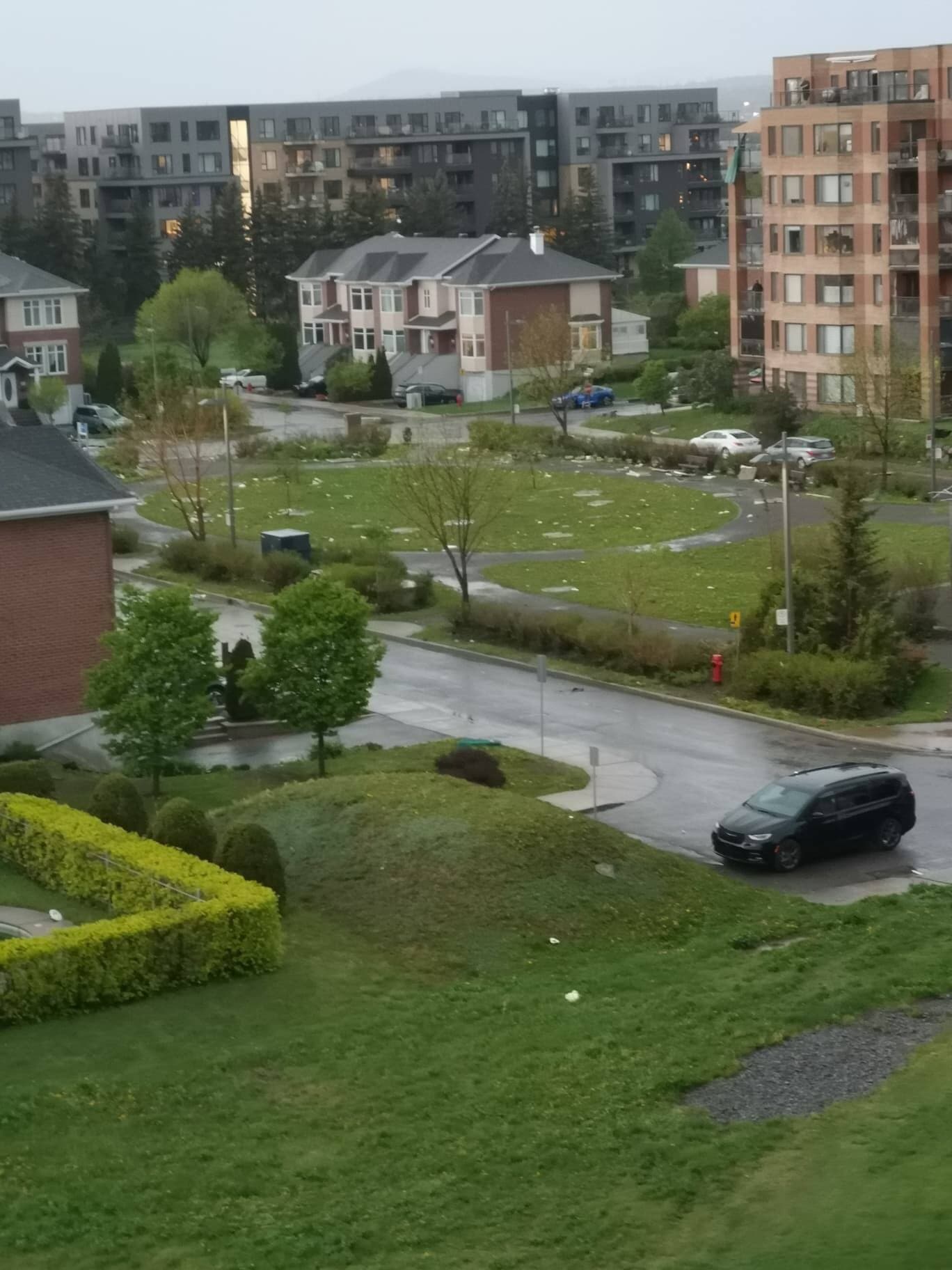 Vers 18 h, Environnement Canada annonçait surveiller «une ligne d’orages très dangereux pouvant produire des rafales destructrices, de la grêle, de la taille d’une pièce de cinq cents à une balle de ping-pong, et de la pluie forte.»