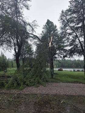 Dans la région du lac Pinehurst, à une heure et demie de route à l’ouest de Toronto, une personne a perdu la vie après qu'un arbre est tombé sur une roulotte.