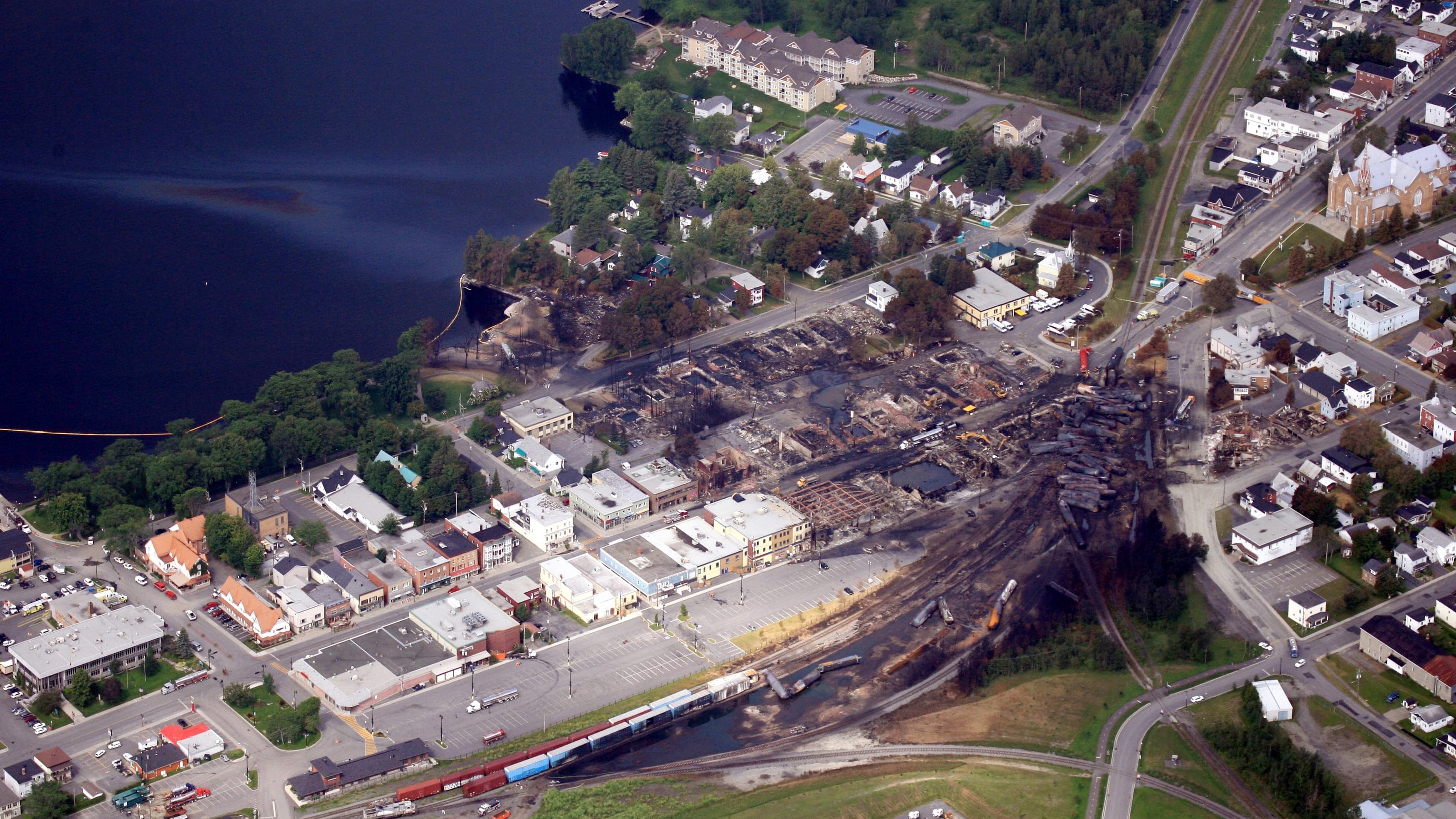 Le brasier causé par le déraillement des wagons a rasé un quadrilatère du centre-ville formé des rues Frontenac, Milette et Thibodeau ainsi que du boulevard des Vétérans. Aujourd’hui, quelques bâtiments ont poussé, mais en nombre inférieur à ceux qui étaient debout avant le drame. Le parc des Générations a aussi été aménagé là où le pétrole s’est frayé un chemin jusqu’au lac. Il fait le lien entre l’Espace mémoire et le parc des Vétérans situé au bord de l’eau. Photos Le journal et d’archives