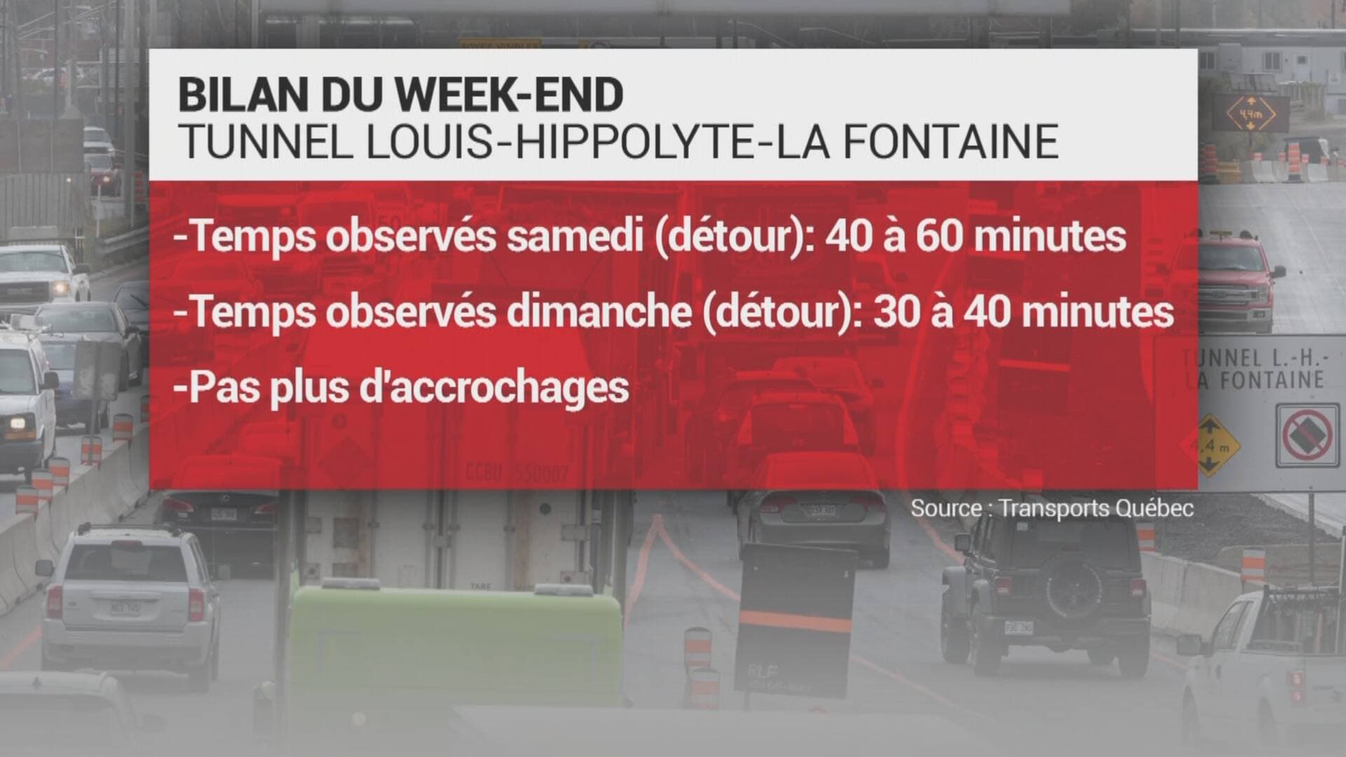 Malgré des retards considérables sur les routes en fin de semaine en raison des travaux qui ont causé une fermeture complète en direction nord du pont-tunnel Louis-Hippolyte La Fontaine, Transports Québec est satisfait