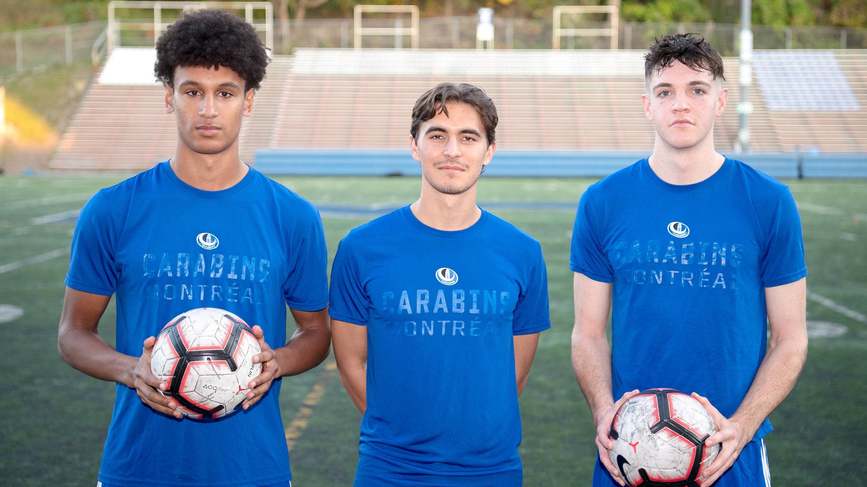 Kareem Sow (Génie mécanique, Polytechnique Montréal), Quentin Paumier (Sciences économiques) et Paul Mortas (Psychologie et sociologie) font partie de l’équipe de soccer pour hommes.