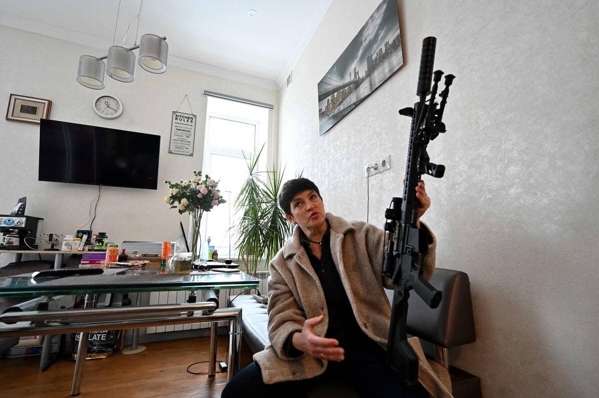 Mère de deux filles adultes et d’un fils de 12 ans, elle a dépensé «deux à trois-mille dollars» — une petite fortune dans l’un des pays les plus pauvres d’Europe — pour s’acheter il y a un an un fusil de chasse ukrainien Zbroyar Z-15, et l’équiper de matériel supplémentaire pour l’adapter au combat.