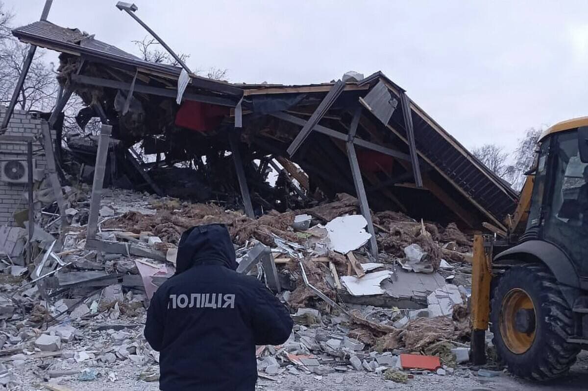Le parquet général, la police nationale et les secouristes ukrainiens ont diffusé plusieurs photos montrant notamment un toit enchevêtré, et des pompiers s'affairant dans les décombres en pleine nuit.