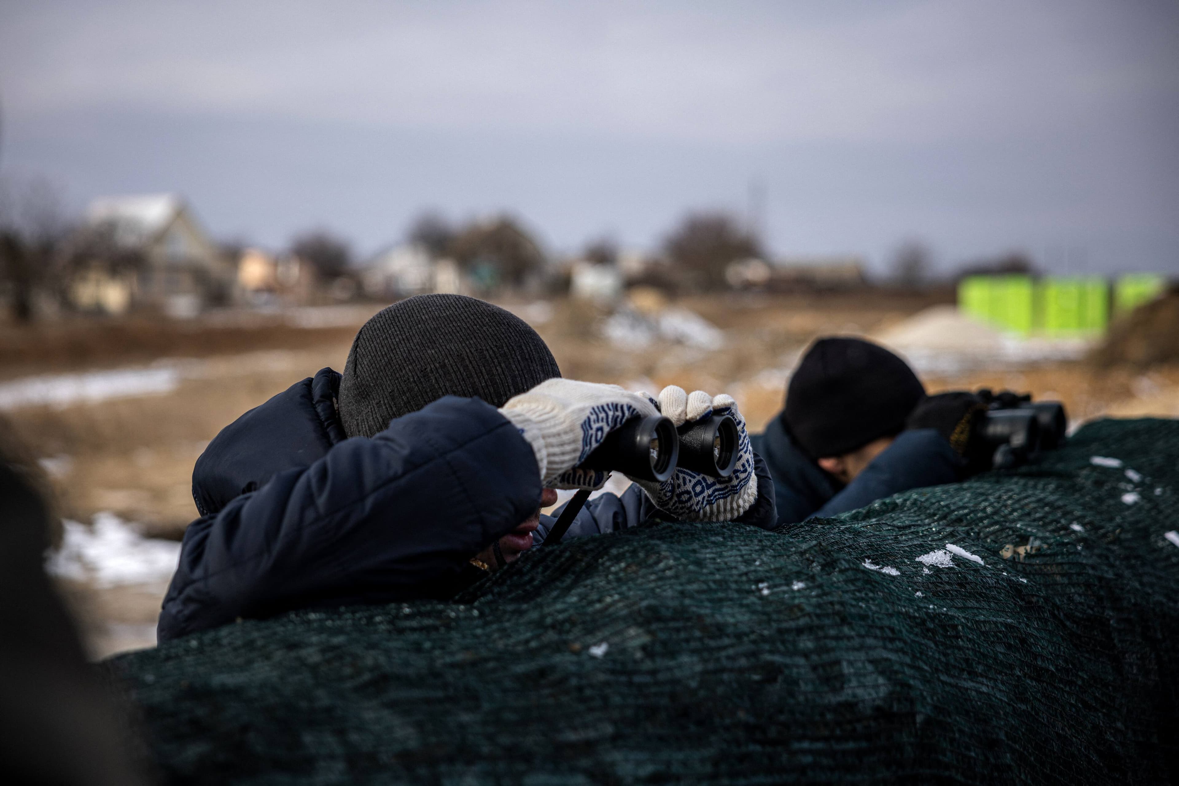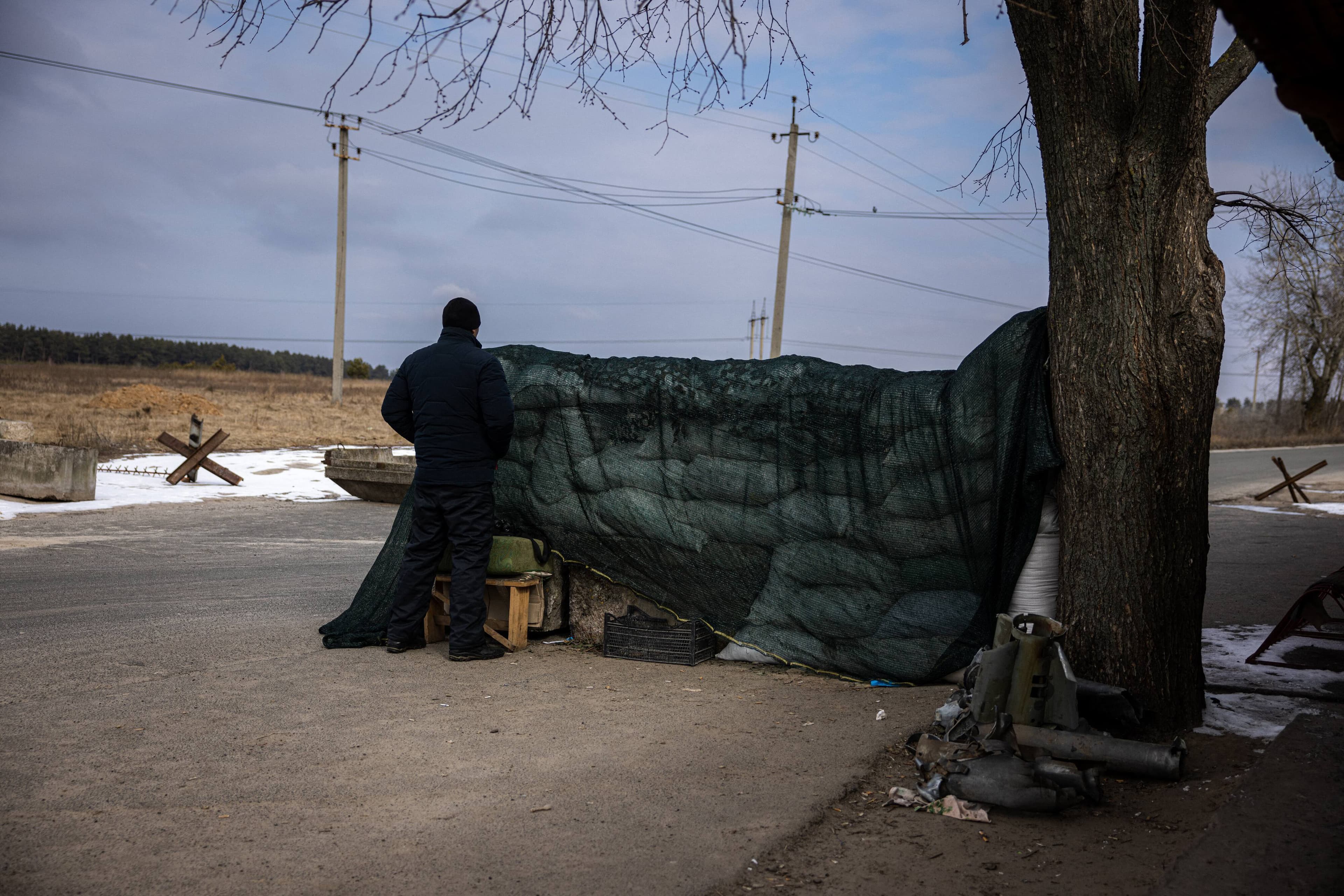 Sur une station service désertée de l'autoroute du nord, un officier ukrainien prévient: «N'allez pas plus loin, les Russes sont derrière».