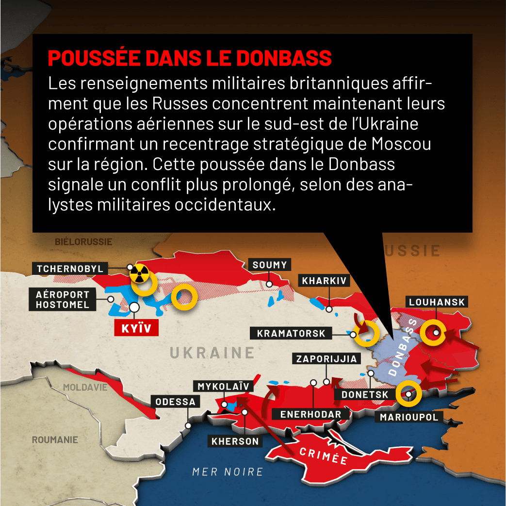 Une offensive russe concentrée sur l’est du pays, mais sans que les attaques contre des cibles civiles ne faiblissent: les États-Unis estiment que la guerre en Ukraine aborde une nouvelle phase, appelant une nouvelle réponse des Occidentaux.
