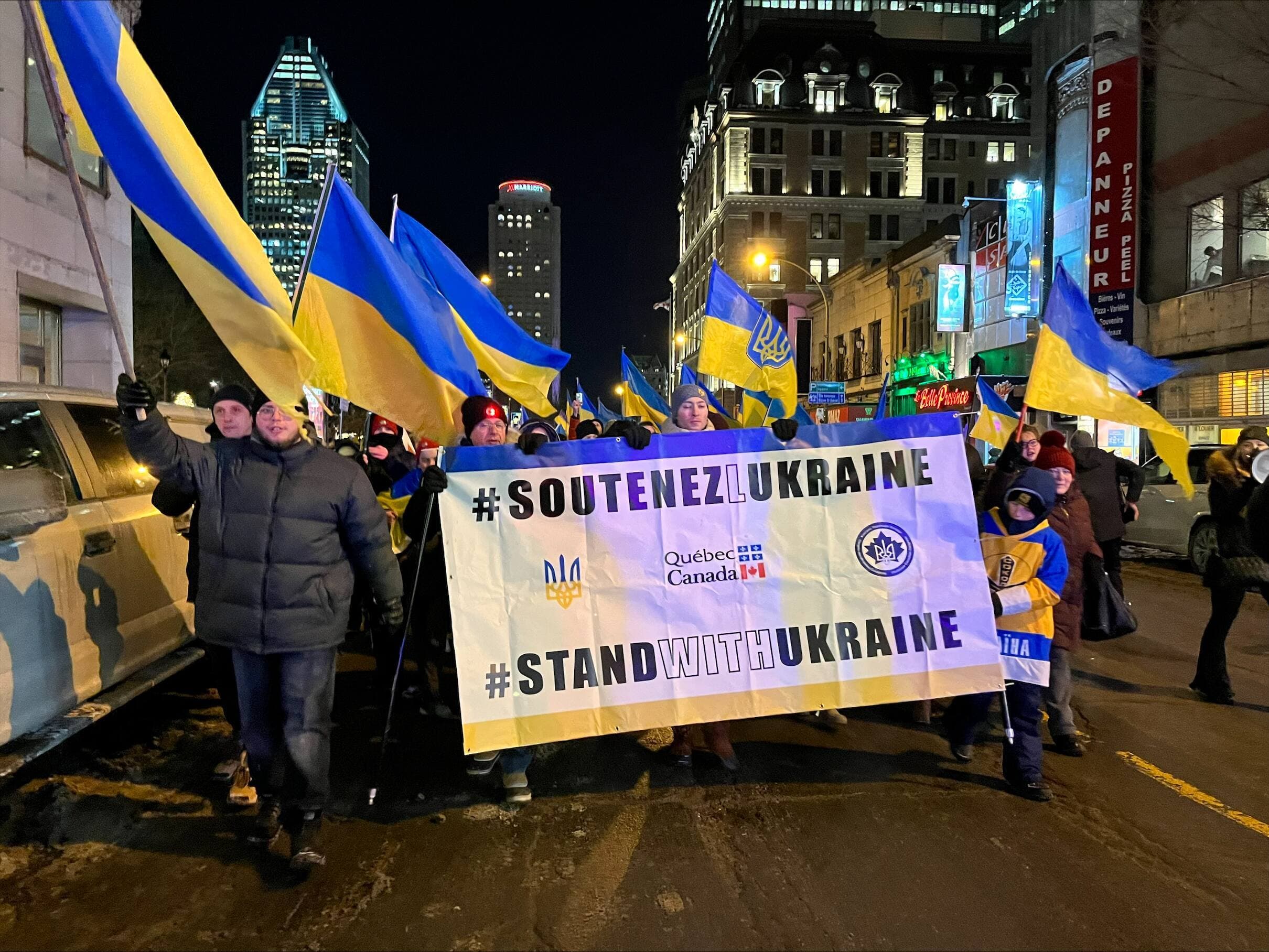 Des personnes d’origine ukrainienne y ont pris part, mais également plusieurs Montréalais qui voulaient montrer leur solidarité avec ce peuple qui se bat depuis un an pour sa liberté.