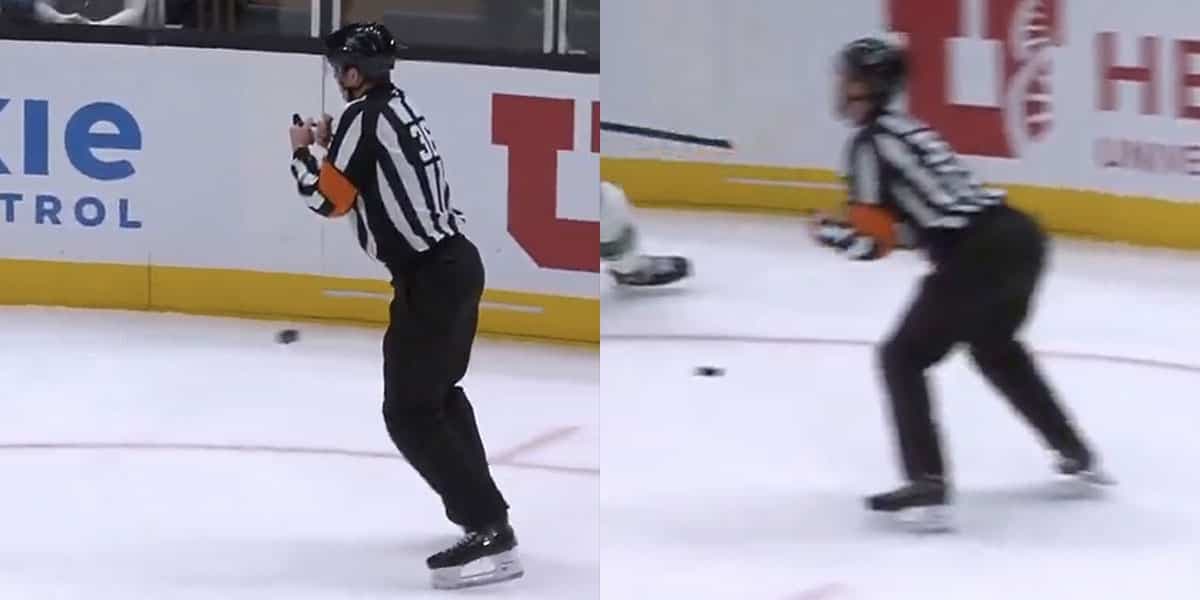 Dimanche soir, l’officiel de la LNH Justin Kea s’est retrouvé à la mauvaise place au mauvais moment lors d'un match opposant les Canucks de Vancouver au Club de hockey de l'Utah.