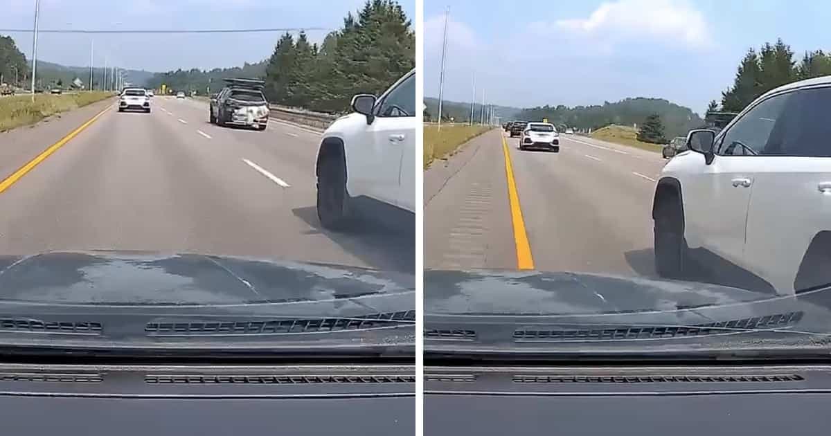 Mais de l’autre, on pourrait arguer que la voiture qui filme n’aurait pas dû être dans la voie de gauche à ce moment-là et son conducteur aurait dû céder le passage au RAV4 pour lui faciliter le dépassement.