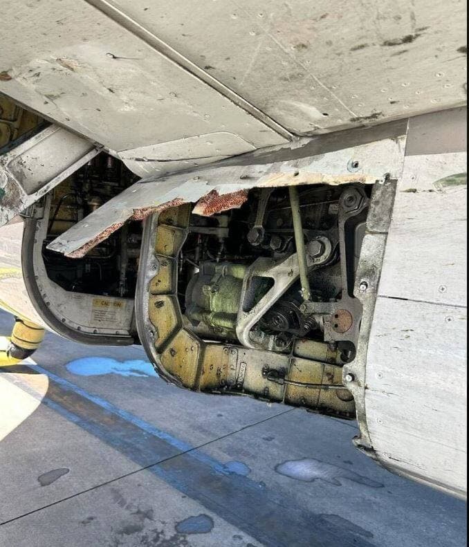 Dans une photo publiée sur les réseaux sociaux, on peut voir un modèle 737-800 qui manque un panneau, à l’extérieur de l’avion.