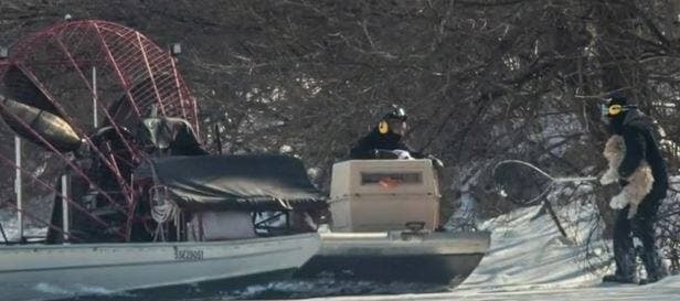 C’est finalement le Canadien Jude Mead, à l’aide de son hydroglisseur, qui est allé à la rescousse du chien.