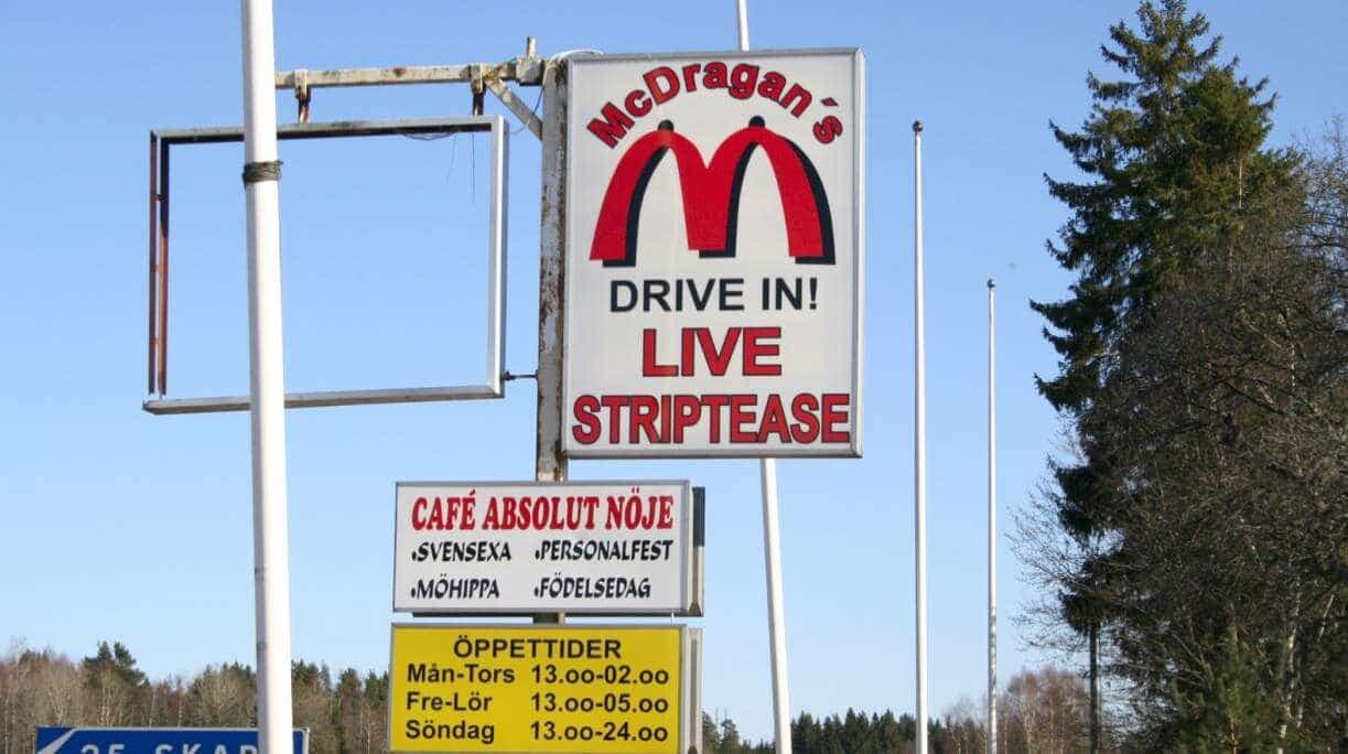 À la tête de la Fédération Suédoise de Sexe, on retrouve un certain Dragan Bratic qui s’était fait poursuivre par McDonald’s en 2009 pour avoir ouvert un bar de danseuses nues dont le nom «McDragan's Drive In» et le logo n’avaient pas plu au géant du burger.
