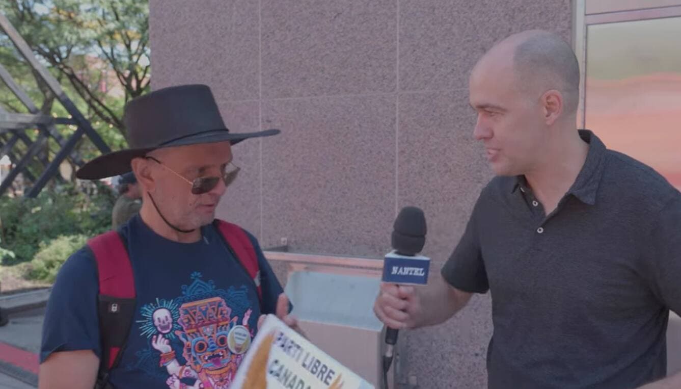 L’homme en question, Michel Leclerc, était candidat pour le Parti libre Canada, une formation qui en était à sa première campagne électorale fédérale. Si vous étiez attentif en visionnant le vox pop, vous avez sans doute remarqué qu'il affichait fièrement le nom de sa formation politique sur un carton.