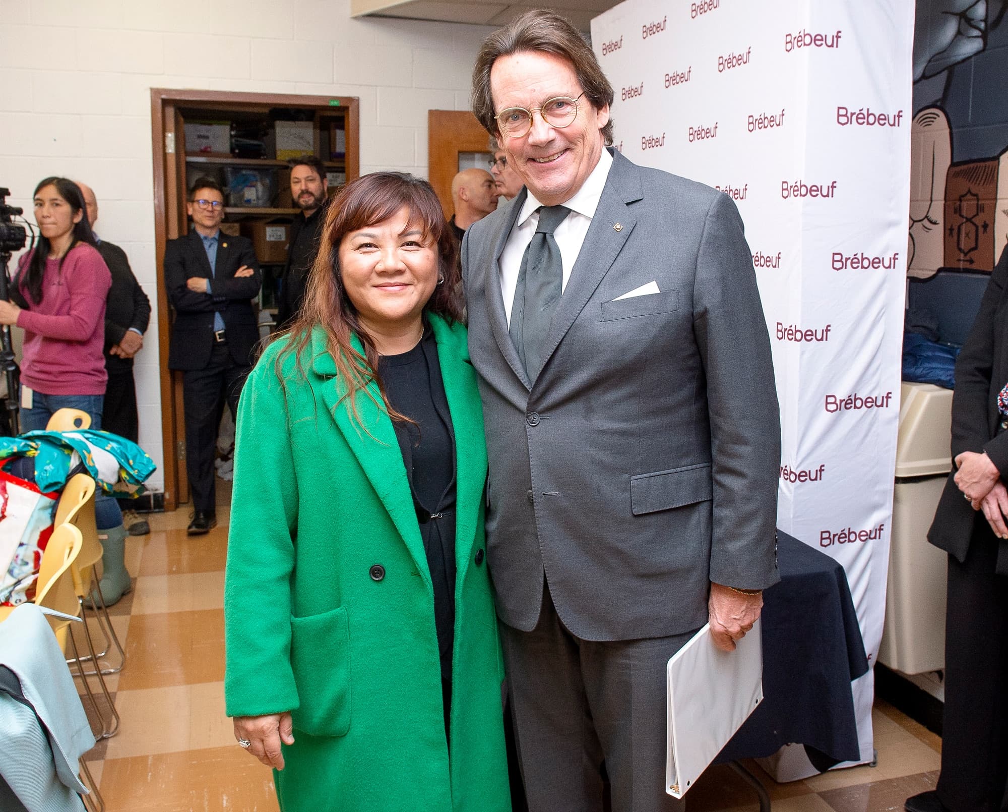 Phoudsady Vanny tenait à féliciter Pierre Karl Péladeau, président et chef de la direction de Québecor, pour son implication au sein de la Fondation du Collège Jean-de-Brébeuf.
