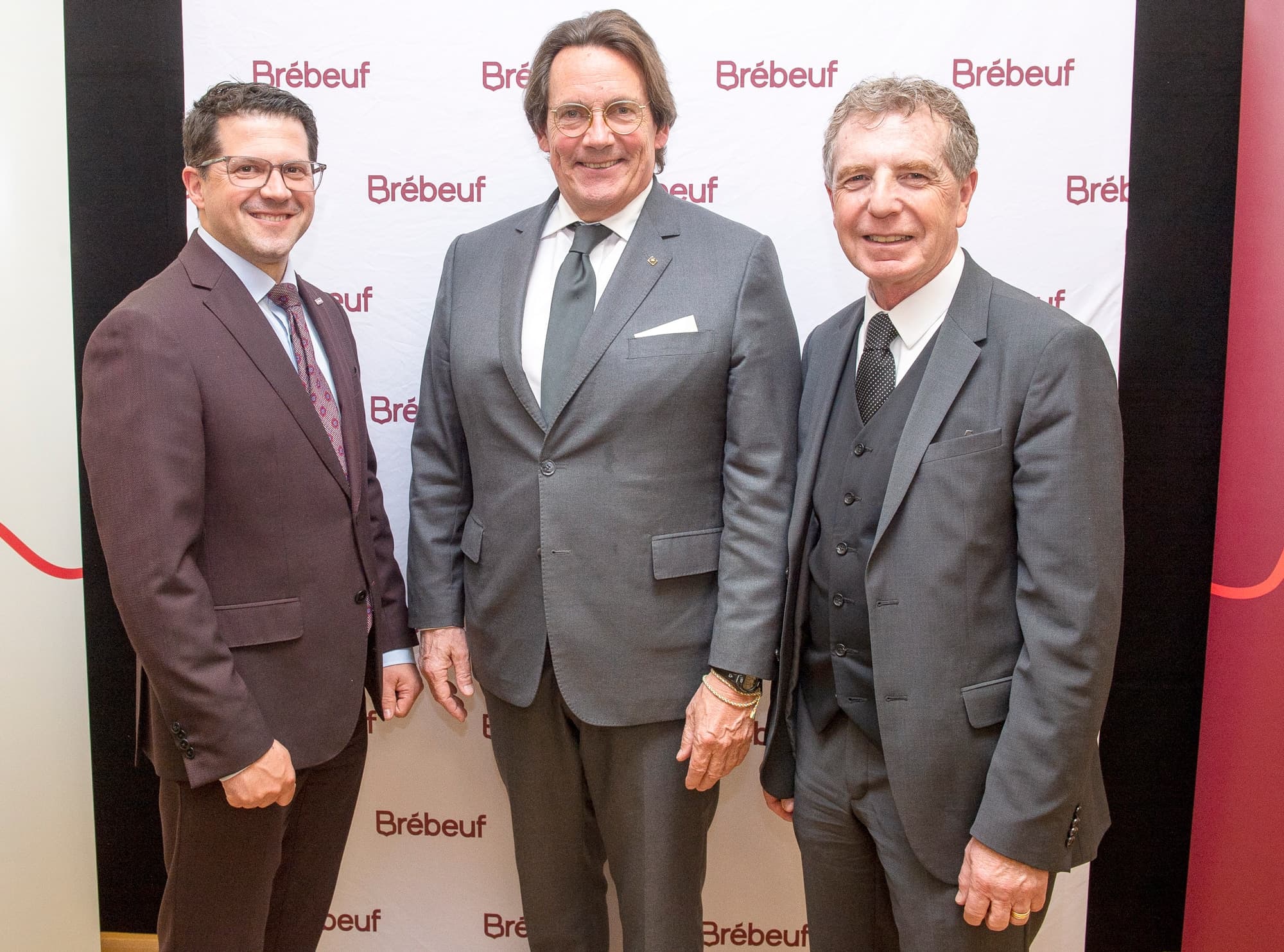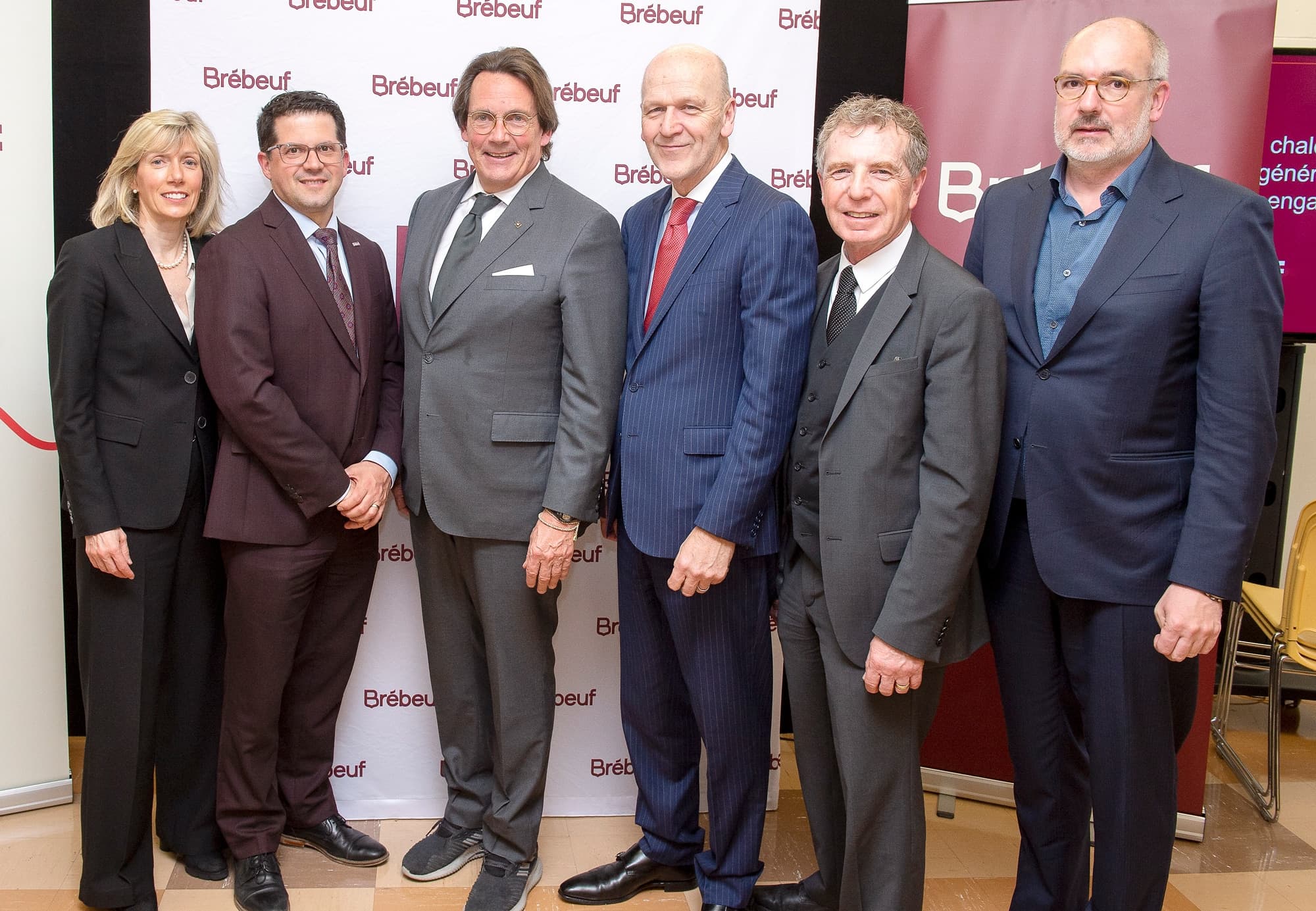 Cristine Lamoureux, DG de la fondation du collège, et Luc Thifault, DG du collège, sont en compagnie des anciens du Collège Jean-de-Brébeuf, Pierre Karl Péladeau, Michael M. Fortier, Jean Gattuso et Me Clemens Mayr.