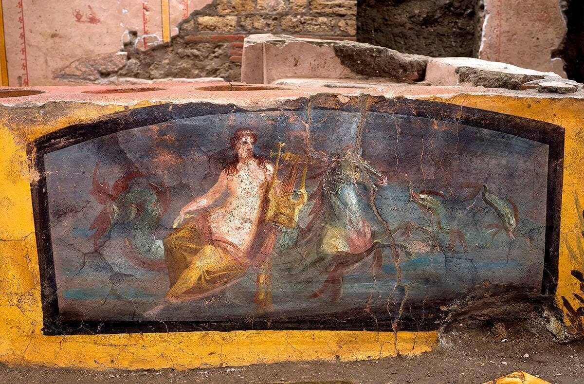 Outre une fresque déjà connue représentant une Néréide (nymphe marine) sur un cheval, les chercheurs ont retrouvé, peints dans des couleurs vives, des animaux, en particulier de la volaille et des canards colverts qui devaient être consommés avec du vin ou des boissons chaudes.
