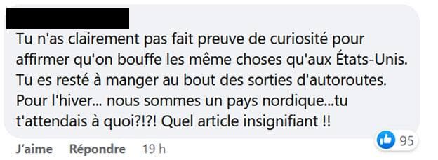 Des internautes français autant que québécois ne se sont pas gênés pour donner leur opinion quant aux propos de l’auteur. Certains se disent en accord avec son analyse, avant de partager leurs propres expériences négatives du Québec. D’autres estiment que l’immigrant déçu généralise et qu’il a manqué de curiosité face à sa terre d’accueil.