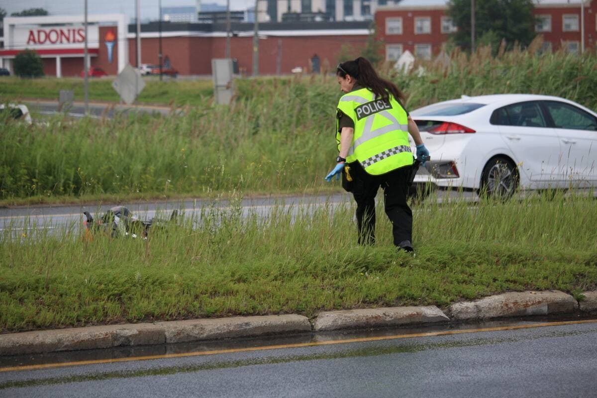 L’engin à deux roues aurait fait une sortie de route vers 14h20 sur une voie de desserte de l’autoroute Félix-Leclerc, près du viaduc de l’autoroute Robert-Bourassa.