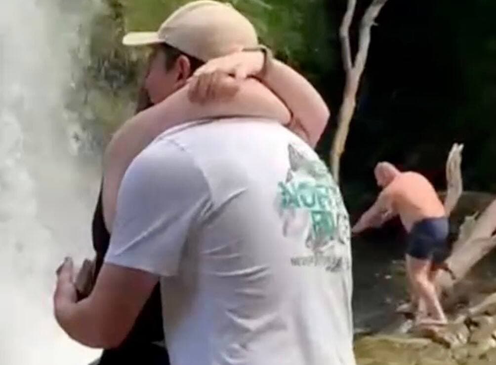 Malheureusement, le vacancier glisse sur le sol qu’on peut imaginer très humide et se retrouve les quatre fers en l’air dans le cours d’eau. Il disparait complètement: