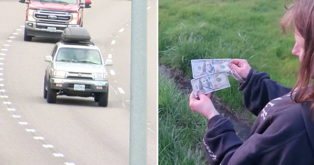 Un homme s’amusait à lancer des piles de billets de 100 dollars par la fenêtre de sa voiture, tout en circulant sur l’autoroute.