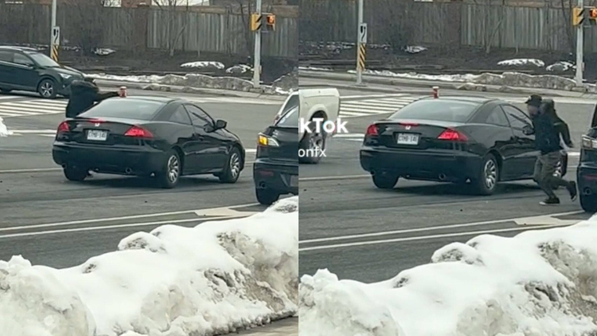 Une autre automobiliste a filmé la scène et l’a publiée sur TikTok, tout en ajoutant l’hymne canadien en trame de fond.