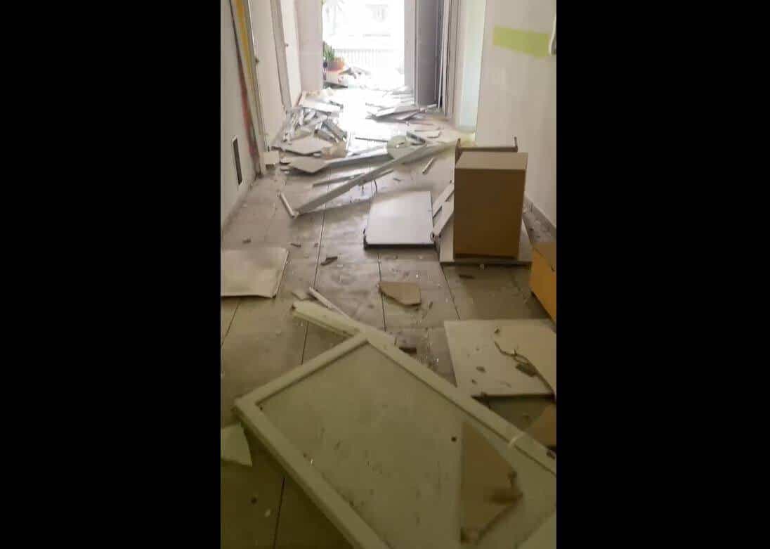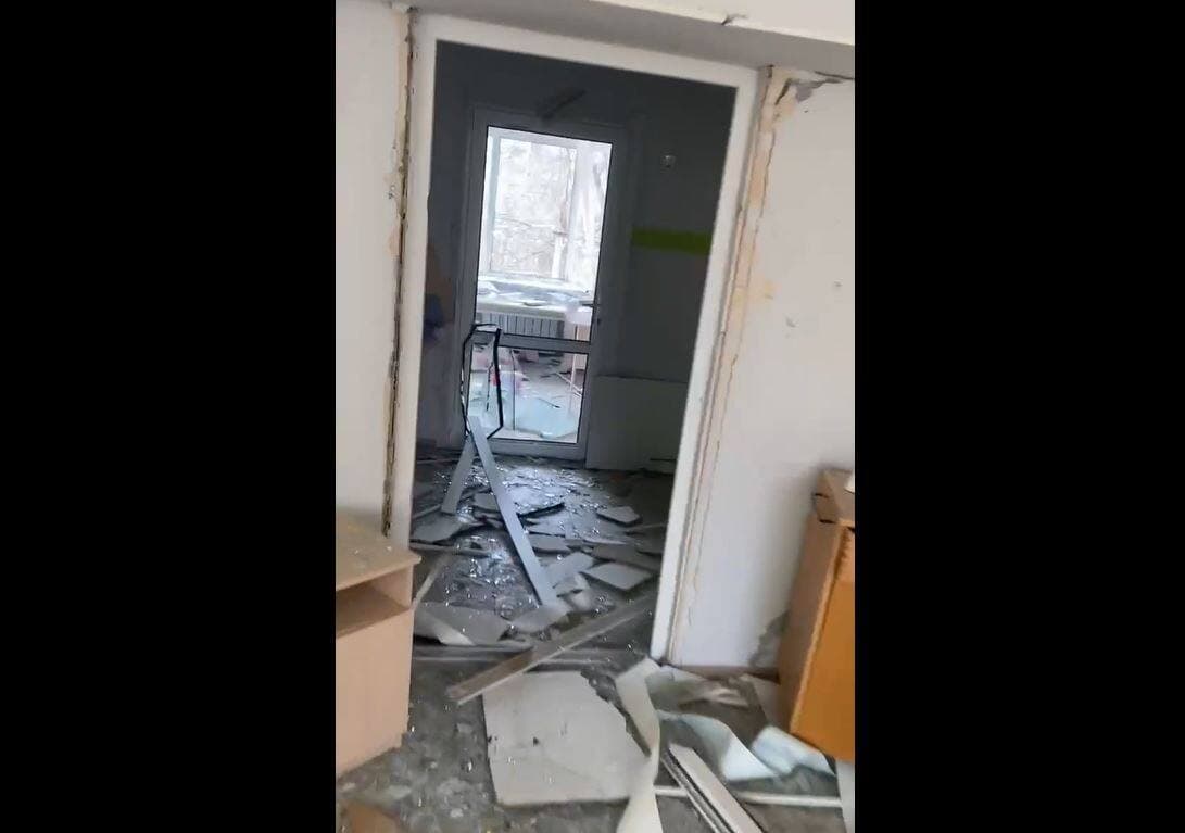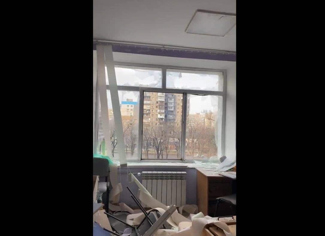 Sur une vidéo publiée par la présidence ukrainienne, on peut voir l’intérieur de bâtiments soufflés, des débris, des feuilles de papier et des morceaux de verre jonchant le sol.