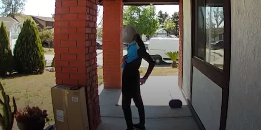 Un livreur Amazon aurait dû mieux balayer des yeux son environnement avant de poser sa boîte sur le porche d’une maison de San Bernardino, en Californie.
