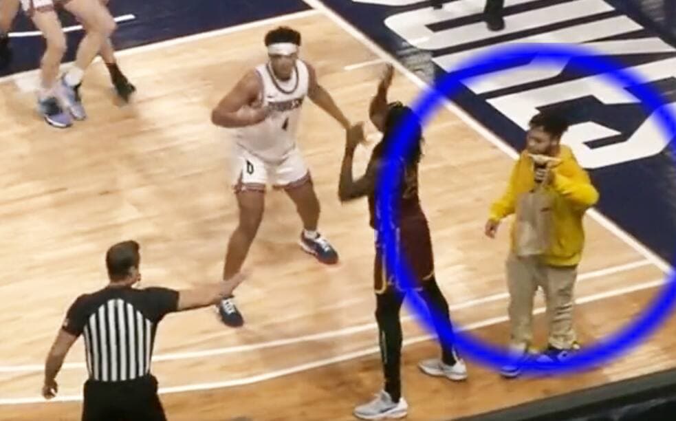 Dans le duel qui opposait les Ramblers de Loyola-Chicago aux Dukes de Duquesne, un livreur Uber Eats a mis les pieds sur la surface de jeu à la recherche de la personne ayant commandé la nourriture qui se trouvait dans le sac qu'il tenait.