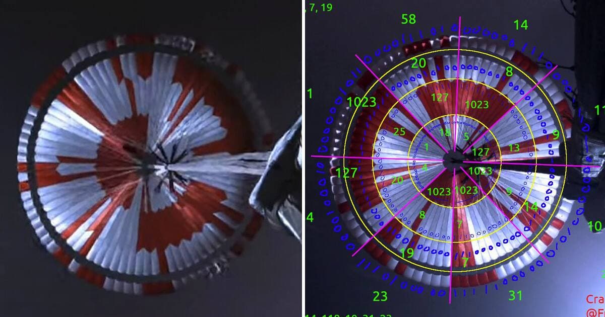 Des détectives amateurs ont réussi à décoder un message caché par la NASA dans le motif du parachute qui a fait descendre le robot Perseverance sur Mars.