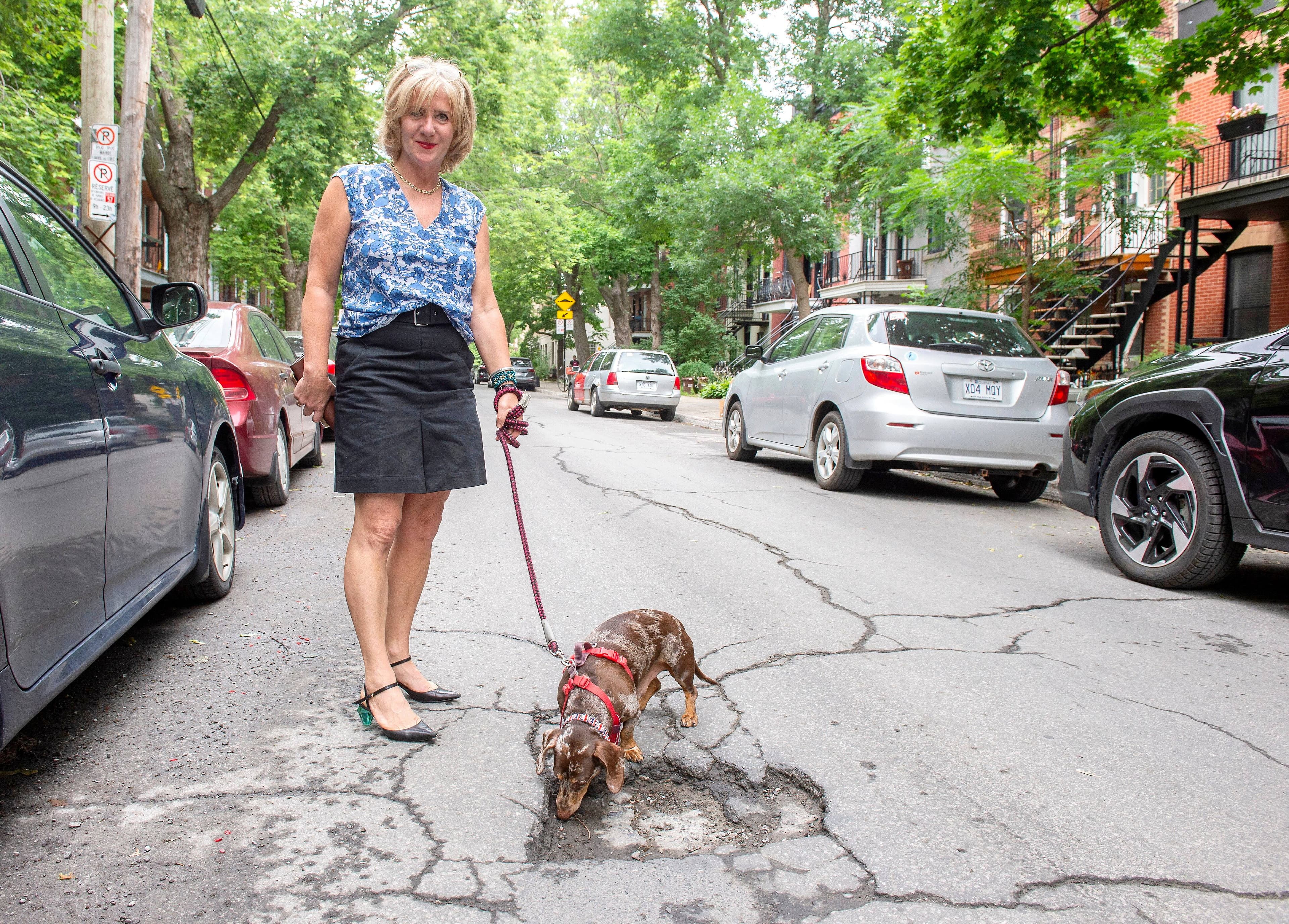 Résidant sur la petite rue Robert-Gravel, elle emprunte les artères du Plateau-Mont-Royal en voiture, en vélo, à pied et en patins à roues alignées depuis 26 ans. À son sens, l’état des infrastructures routières n’a cessé de se détériorer dans son quartier dans les dernières années.