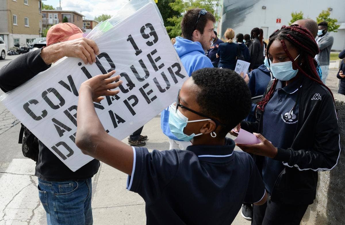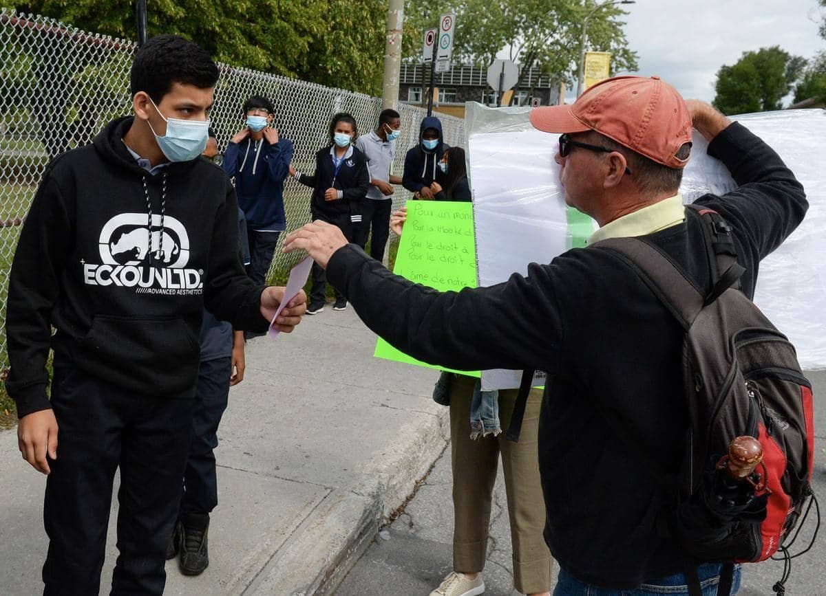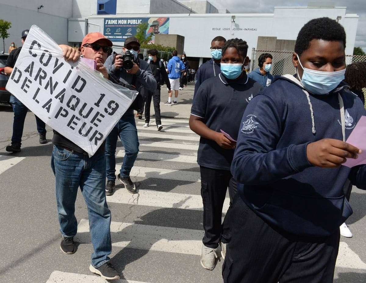 Un nouveau rassemblement antivaccin devant une école secondaire
