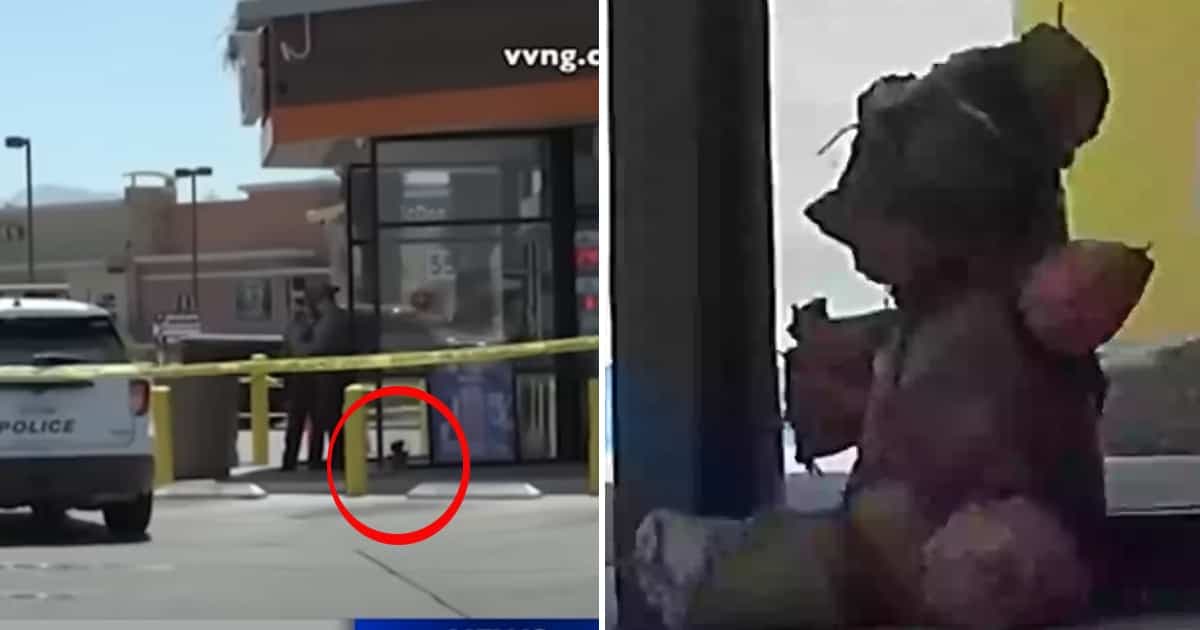 Des images de la scène montrent en effet qu’un étrange toutou repose sur le sol devant le commerce, tandis que des rubans jaune de police bouclent les lieux.