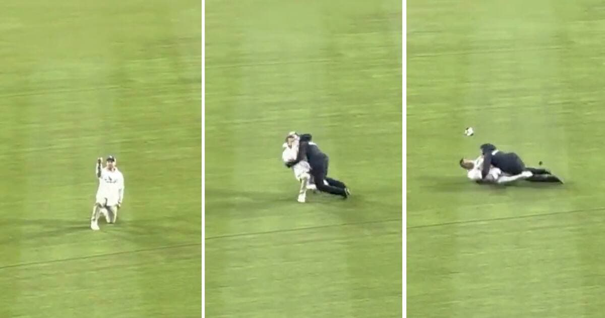 Quelques responsables de la sécurité ont ensuite menotté le partisan ayant un chandail de Mookie Betts sur le dos pour le transporter hors de la surface de jeu.