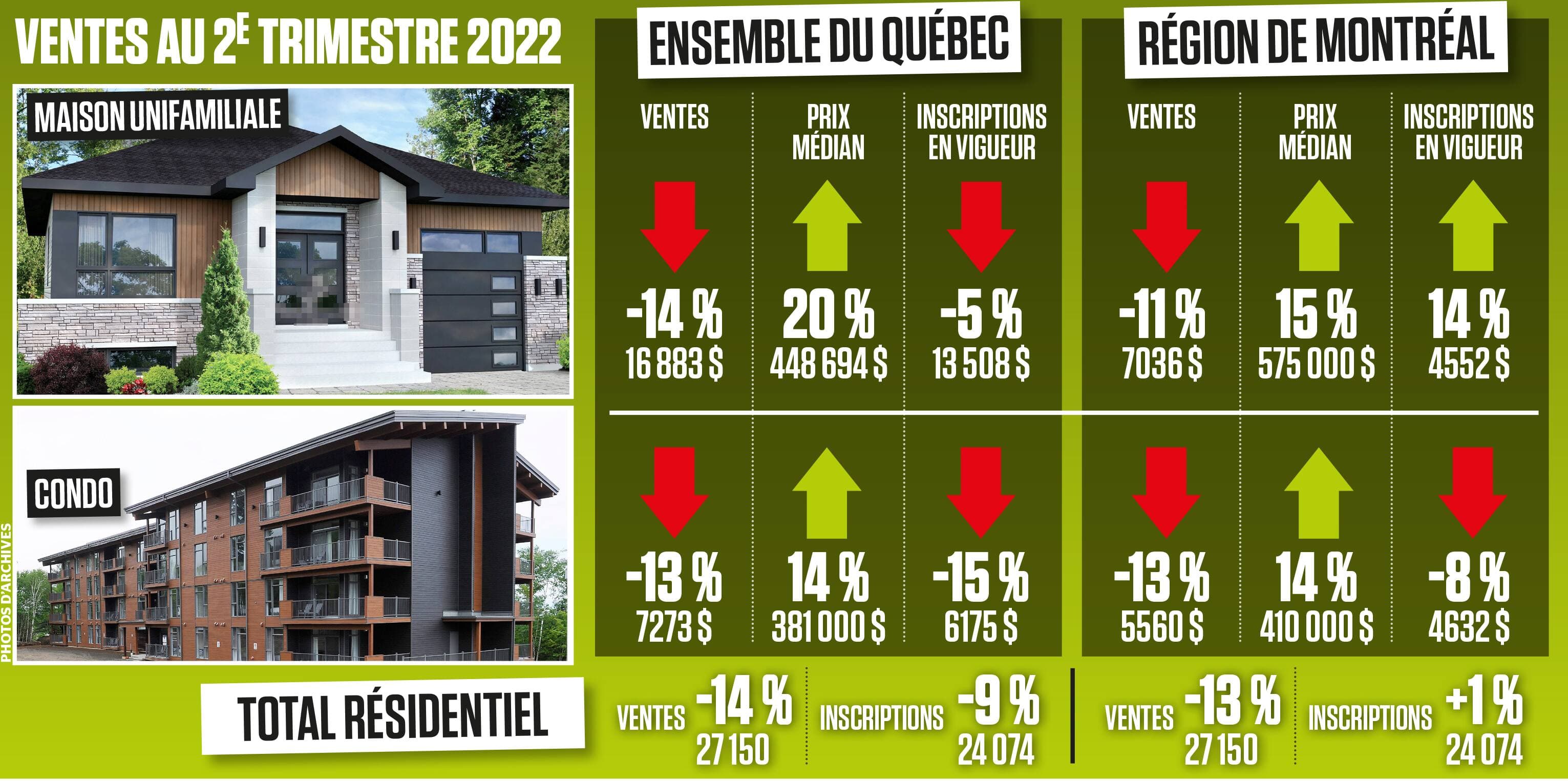 Le dernier son de cloche vient de l’Association professionnelle des courtiers immobiliers du Québec (APCIQ). D’avril à juin, le prix médian d’une maison unifamiliale est passé à 450 000 $ au Québec, une hausse de 20 %.