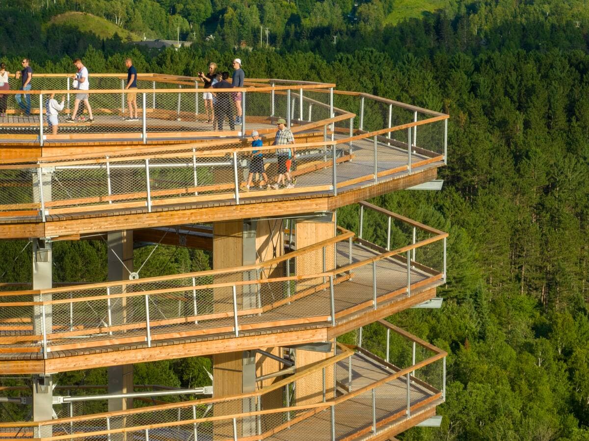À Mont-Blanc, dans les Laurentides, il est dorénavant possible de se promener en forêt à la hauteur des arbres et de terminer sa visite au sommet d’une tour d’observation de 40 mètres de hauteur, où la vue sur la région est imprenable.