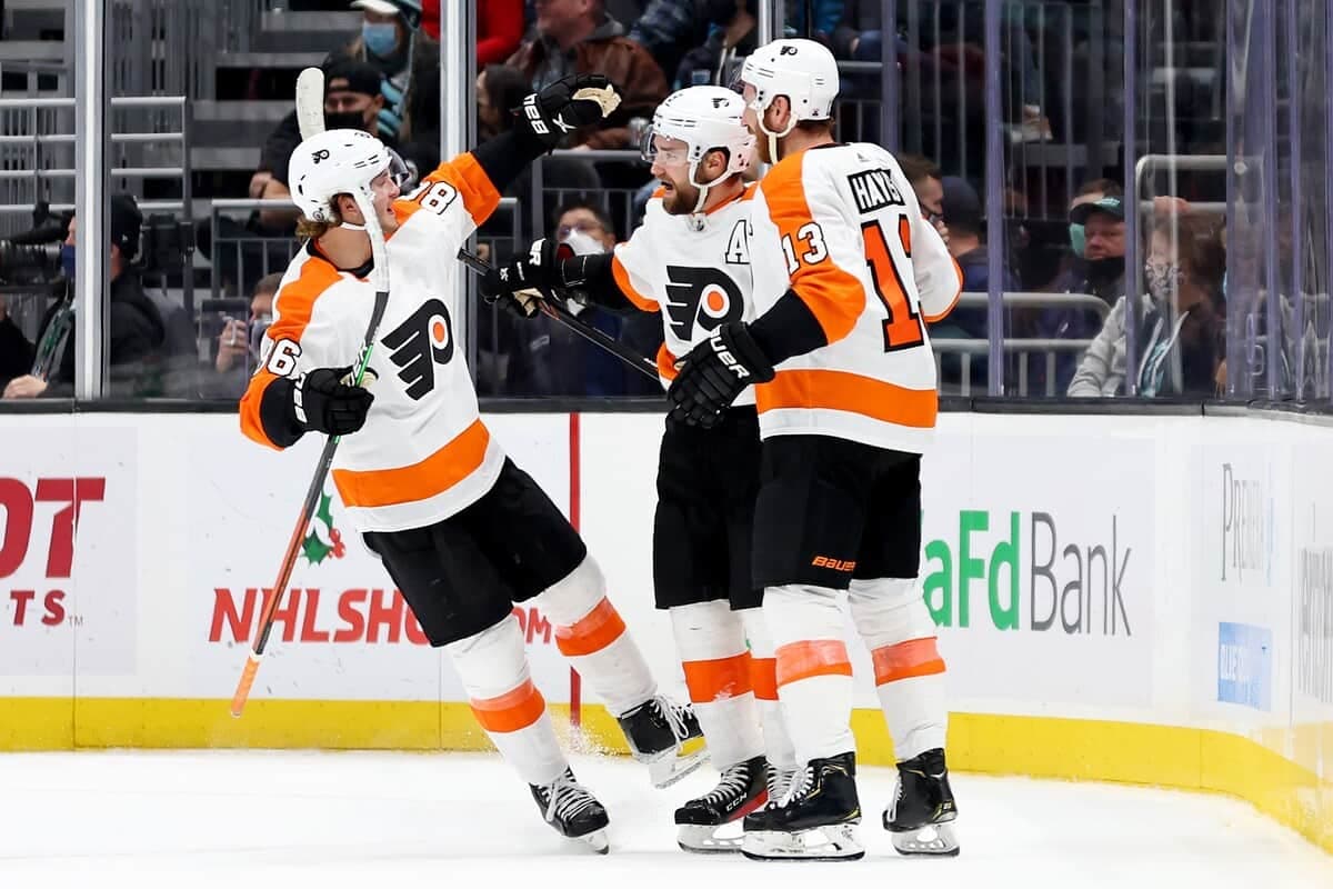 L’envol des Flyers fut toutefois de courte durée. Tage Thompson a ajouté à sa meilleure saison dans la Ligue nationale de hockey (LNH) en inscrivant ses 13e et 14e de la campagne avant que Peyton Krebs n’enfile l’aiguille pour la première fois de sa carrière en fin d’engagement.