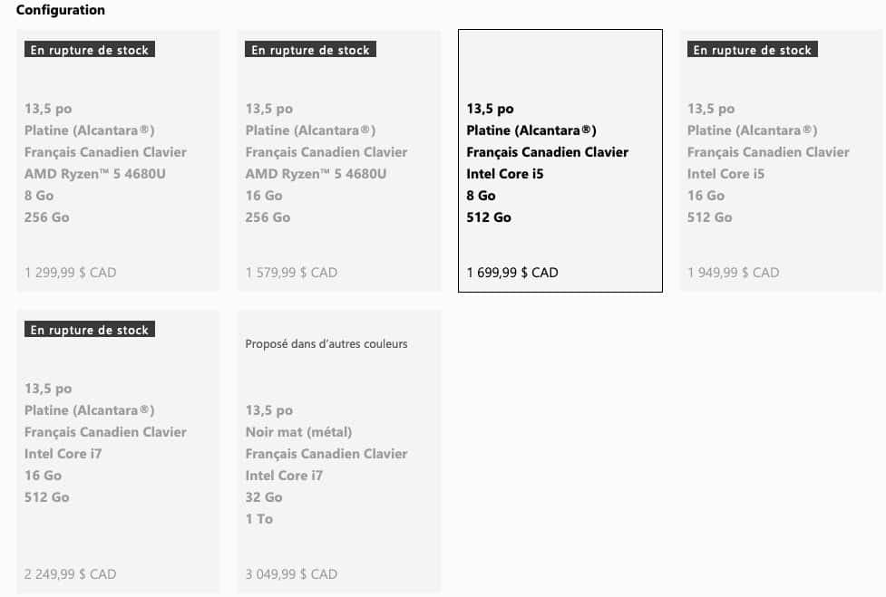 Avec le clavier canadien-français, la plupart des versions sont en rupture de stock selon la couleur choisie.