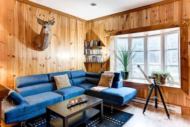 La construction de 1984 donne l’impression qu’elle existe depuis bien plus longtemps avec ses magnifiques boiseries qui décorent chaque pièce.