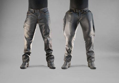 Les pantalons spéciaux ne sont pas faits de denim, mais bien d’Armalith, un tissu qui a la texture et l’apparence du denim, mais qui est imperméable et résistant à l'abrasion.