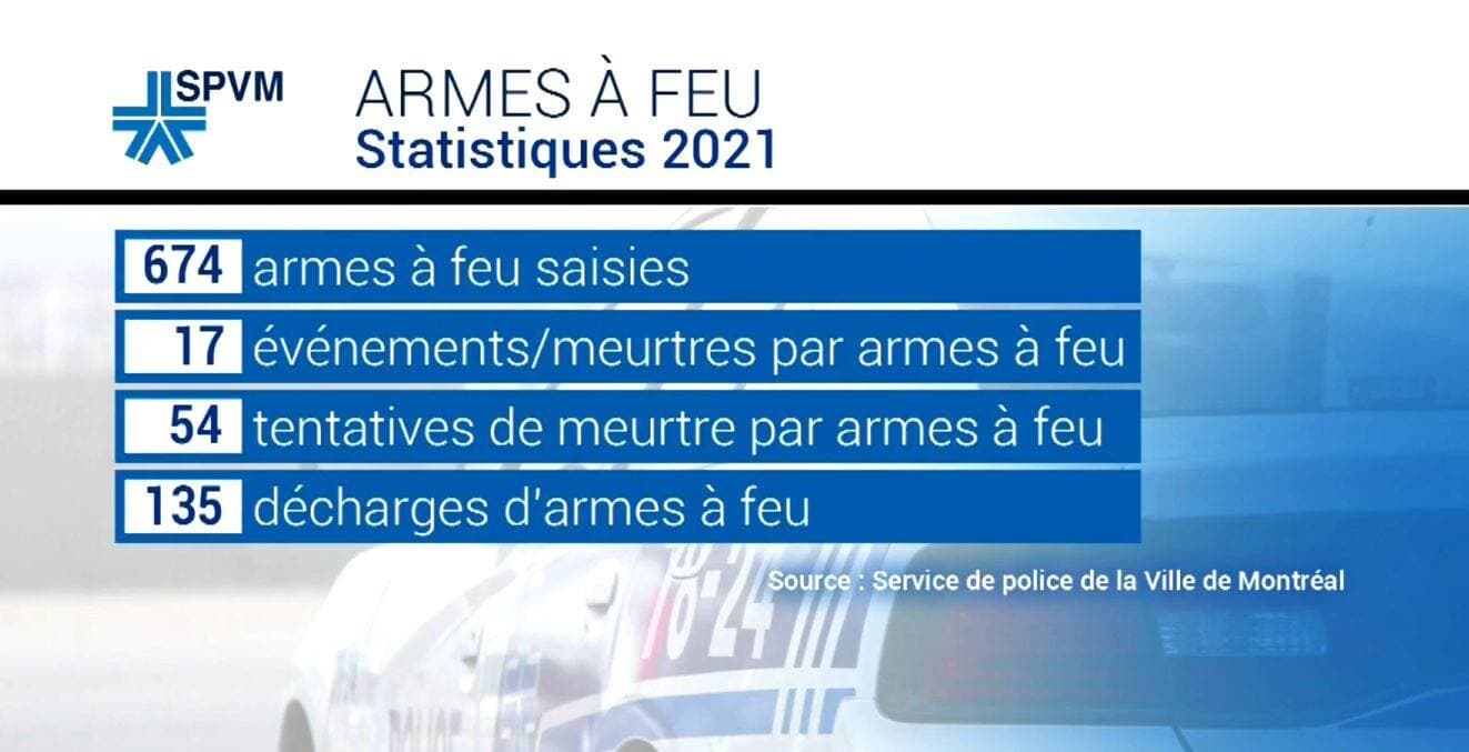 L’opération vigie nocturne fait partie des mesures mises en place par le SPVM pour réduire le nombre de violences par arme à feu sur son territoire. En 2021, le SPVM a saisi 674 armes à feu.