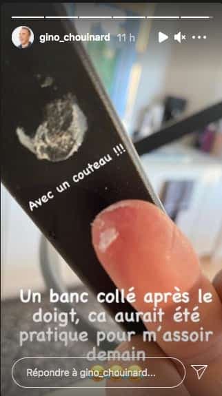 Mardi soir, sur son compte Instagram, Gino Chouinard a publié une story qui en a amusé plus d'un. Alors qu'il faisait quelques petits ajustements à un tabouret, il s'est collé le doigt à celui-ci... avec de la colle forte! Avec une touche d'auto-dérision, il s'est tourné vers ses abonnés pour trouver une solution à sa fâcheuse situation. Heureusement, Gino s'en est tiré sans trop de dommages. Mais ses malheurs n'étaient pas teminés, puisque Mathieu Roy a décidé de le taquiner un peu à Salut Bonjour, toujours avec beaucoup d'amour. Cette petite gaffe de Gino n'a pas manqué de faire rire toute l'équipe, qui s'est amusée à l'appeler «Monsieur Bricole» (ou encore, «Monsieur Bris-Colle», suggère Charles-Antoine Sinotte)!