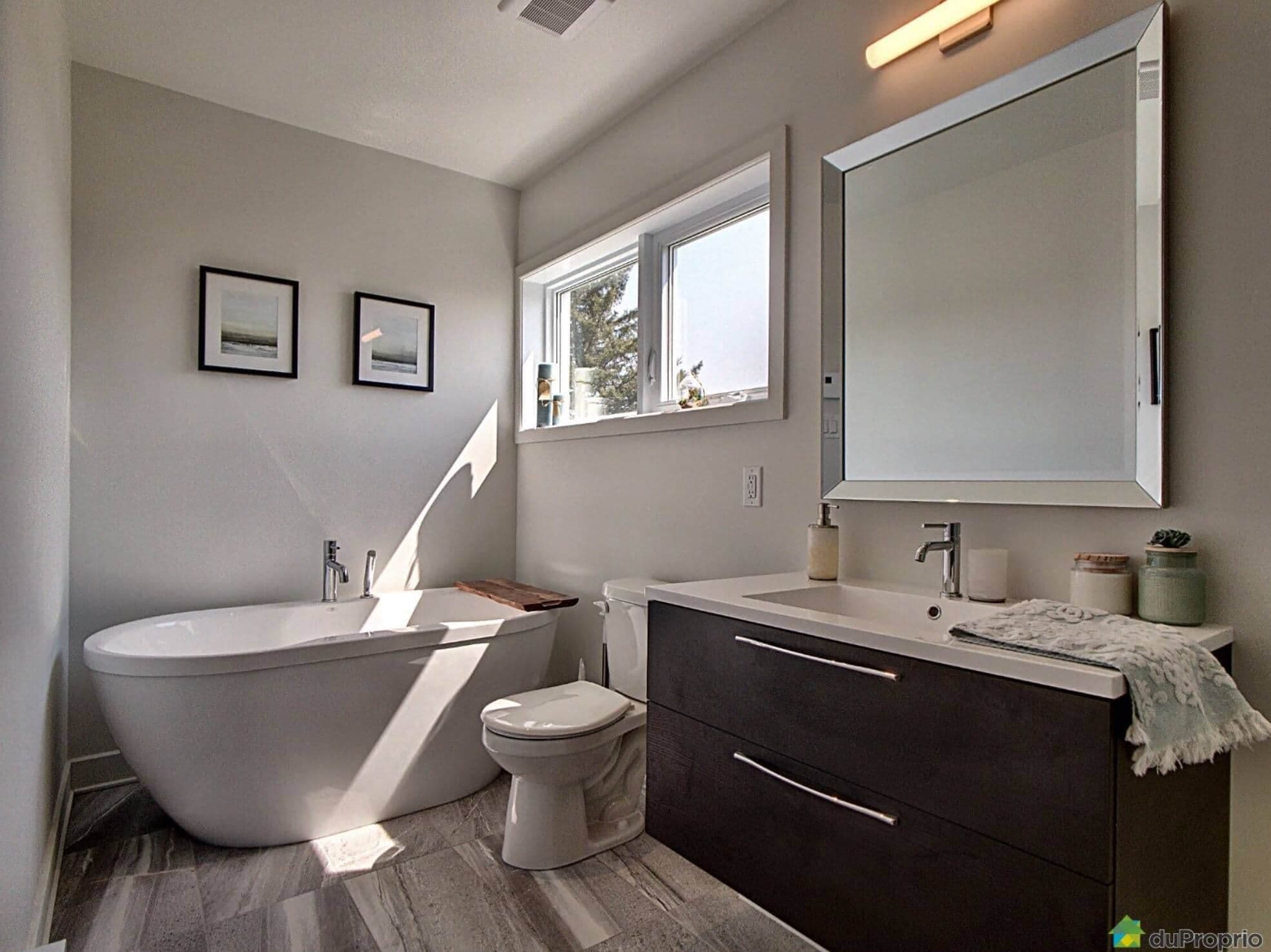 Dans la salle de bain, on retrouve un bain autoportant ainsi qu’une douche indépendante.