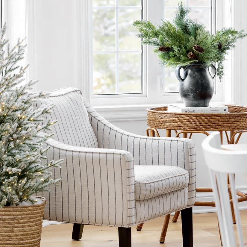 L’an dernier, Julie a demandé à la designer Manon Thibault, qui venait tout juste de réaménager la maison, de lui prêter main-forte pour renouveler ses ornements de Noël et les harmoniser avec le décor. «J’avais trop de décorations, et Manon m’a fait comprendre que moins, c’est mieux. Les ornements au thème hivernal sont désormais plus naturels, faisant une part belle au sapinage, de sorte que je peux en laisser une grande partie en place jusqu’en mars.»