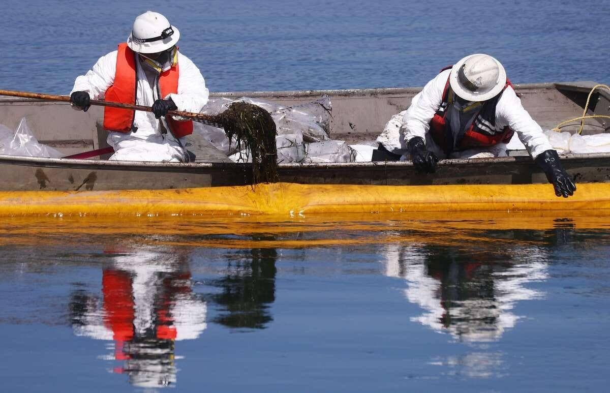La marée noire, estimée à près de 480 000 litres de pétrole brut et s’étendant sur plus de 30 km2, serait due à une fuite sur un oléoduc passant près de la côte.