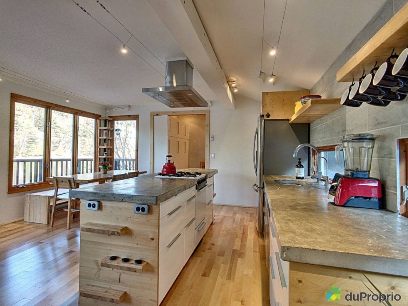La cuisine a récemment été rénovée et offre des comptoirs en béton poli conçus sur mesure.