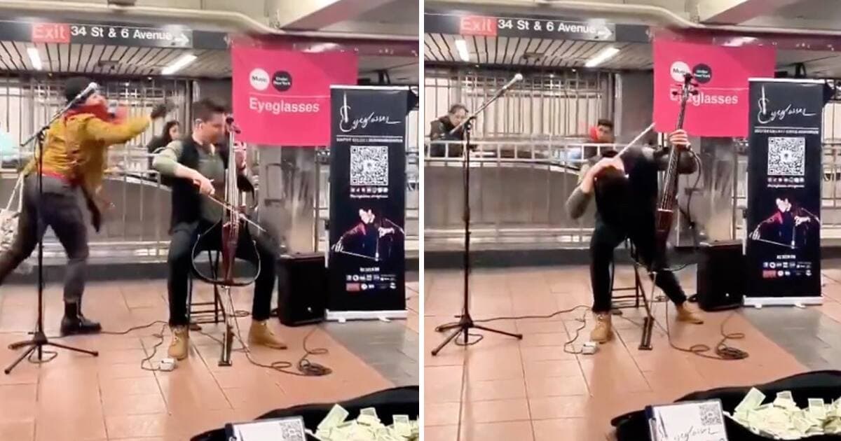 Heureusement, l’étudiant en médecine qui joue du violoncelle électrique filmait sa performance et il a pu téléverser sur X/Twitter la vidéo du geste violent.